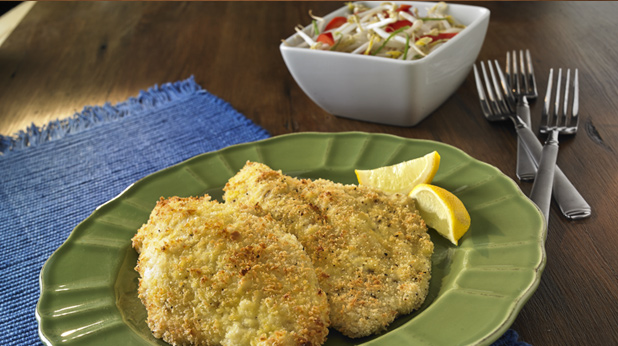 Have a baking sheet lined with aluminum foil, ready to place the breaded fish fillets. -